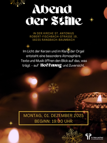Im Licht der Kerzen und im Klang der Orgel - Herzliche Einladung am Montag, 01.12.25 um 19:00 Uhr