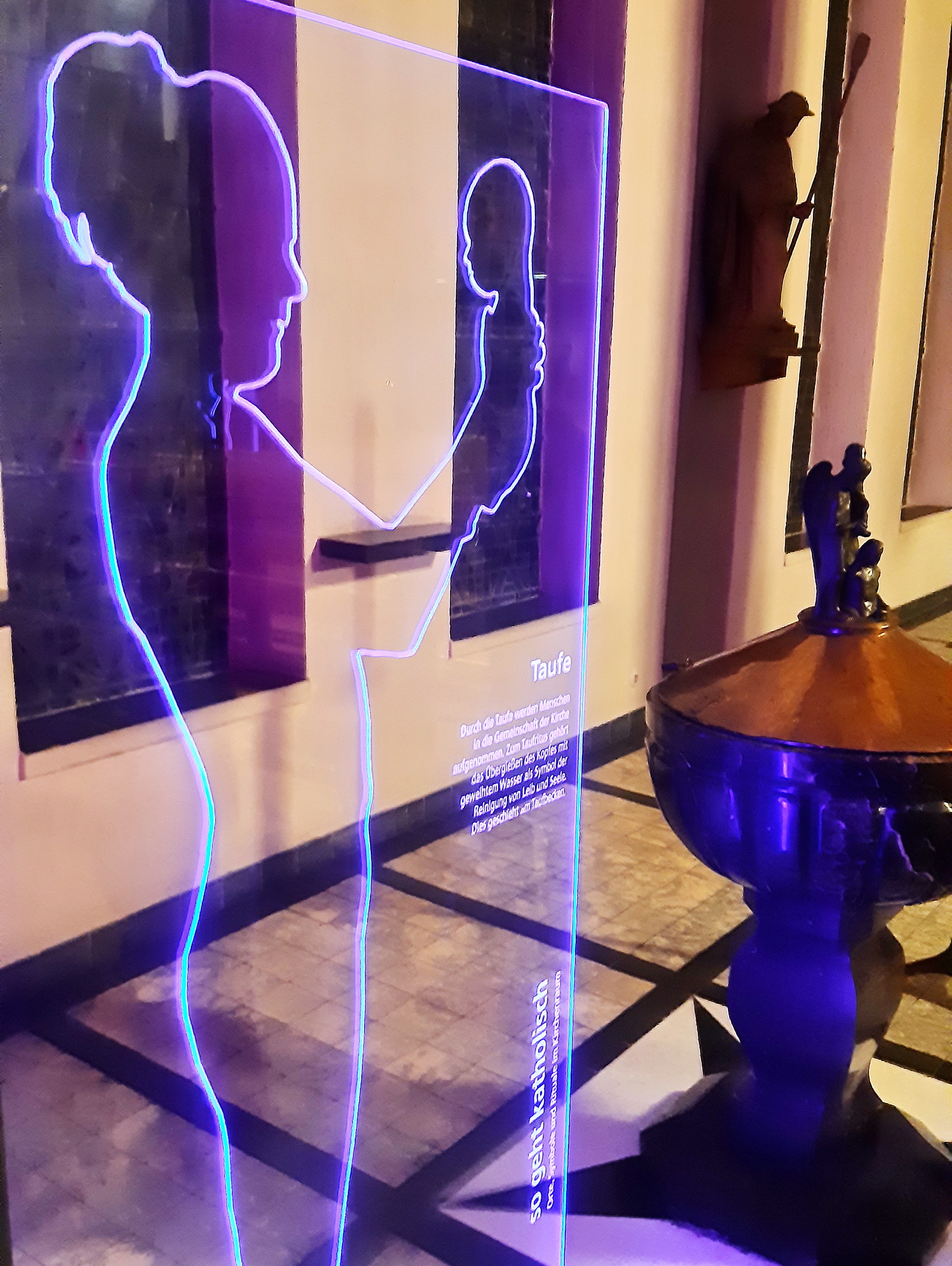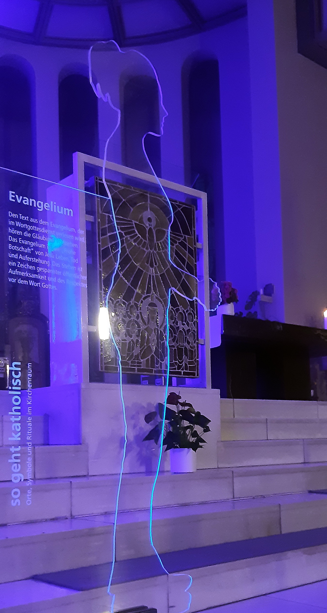 Kolping Ransbach betreut noch bis zum 15. Oktober 2023 die Ausstellung "So geht katholisch" in der St. Markus-Kirche über Orte, Symbole und Rituale im Kirchenraum. Die Ausstellung wurde von der Katholischen Erwachsenenbildung des Bistums Limburg erstellt.