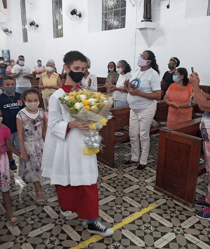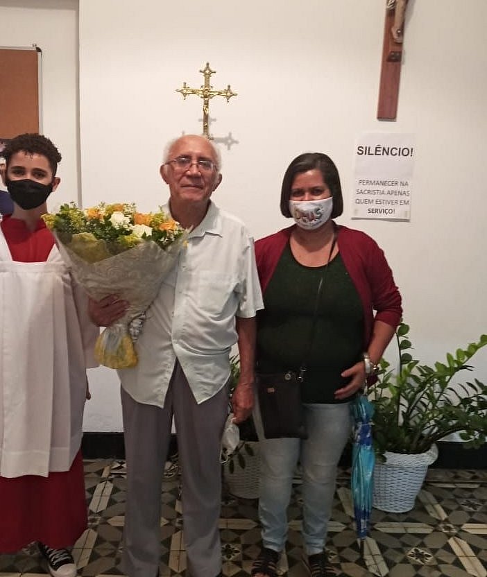„Am 18.04.2021 ist Pe. Oliveira 45 Jahre Priester und davon 43 Jahre in unserer Gemeinde, der er liebevoll sein Leben gewidmet hat. Wir gratulieren zu seinem Amt, für seine Arbeit, seine Hingabe und Treue zu Gott, zur Kirche, zu unserer Kirchenpatronin und den Gläubigen - besonders zu unseren ärmeren Geschwistern. In einem Gottesdienst am 18.04. um 17.00 Uhr können wir uns unter den bekannten Corona-Bestimmungen versammeln“