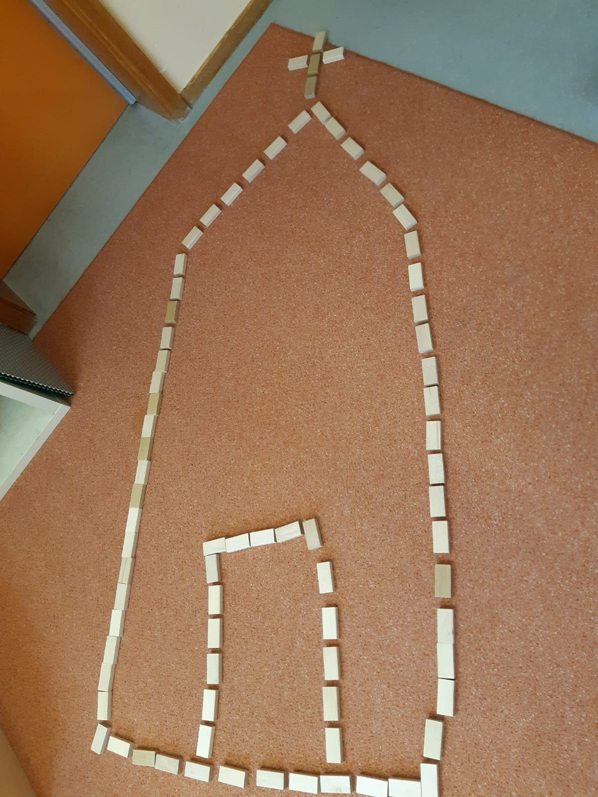 Die Pfingstgeschichte legten die Kinder mit unterschiedlichen Materialien und so entstand auch eine Kirche.
