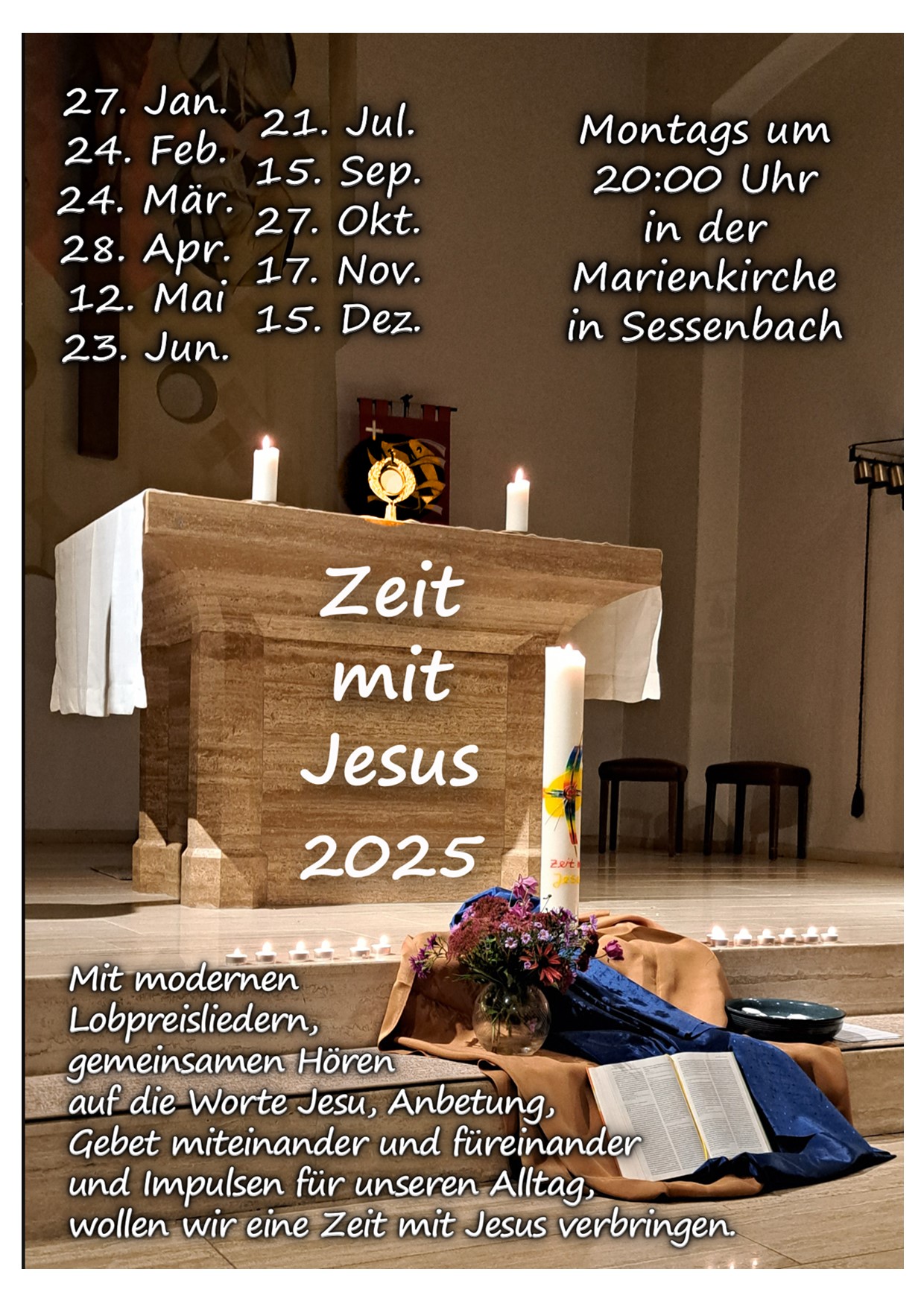 Montags, 20 Uhr, in der Marienkirche in Sessenbach (Kirchstraße)