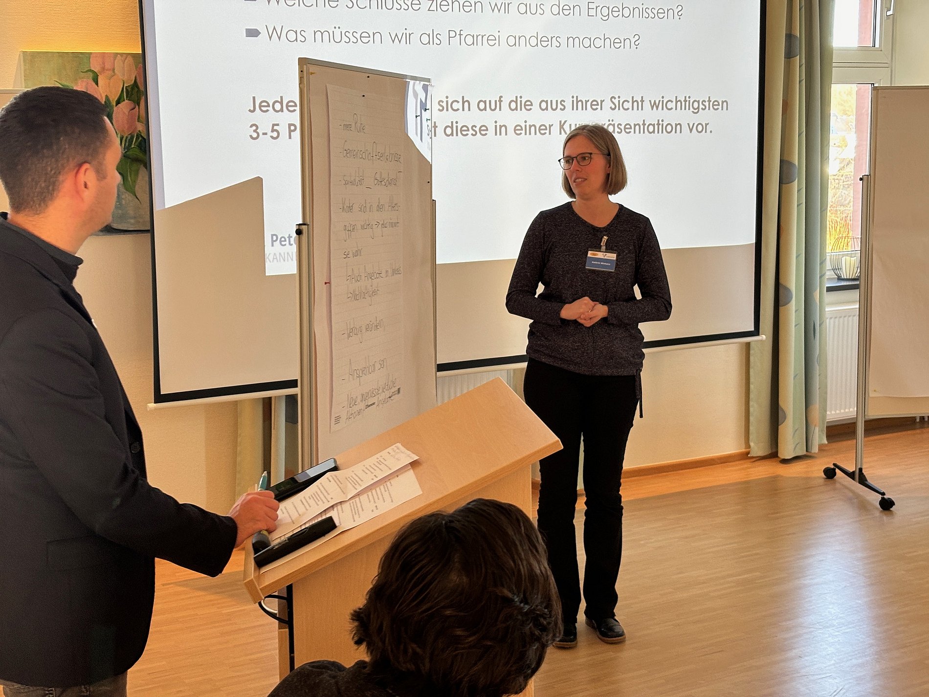 Mit unserer Online-Befragung sind wir genau diesen Weg gegangen und Diakon Marco Rocco als Verantwortlicher für den Visions-Prozess und der Pfarrgemeinderatsvorsitzende Dr. Florian Dittrich stellten vormittags die zentralen Ergebnisse aus den insgesamt 356 ausgefüllten Fragebögen vor. Am Nachmittag tauschten sich die Anwesenden in Kleingruppen zu den Erkenntnissen aus den sogenannten qualitativen Interviews aus, die unser ehrenamtliches Visions-Team in den letzten Monaten mit den unterschiedlichsten Menschen aus dem Kannenbäckerland geführt haben. In einem Punkt zusammengefaßt, erwarten die Menschen von der Pfarrei, dass sie Gemeinschaft fördert und durch einladende Angebote wie Jugend- und Familienprogramme, verbindende Veranstaltungen und nahbare Glaubensvertreter eine starke soziale und emotionale Bindung schafft.