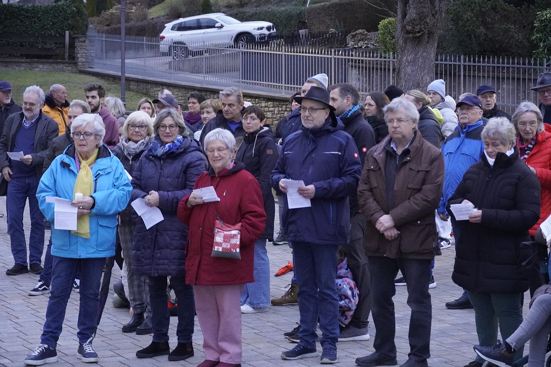 Mehr als 150 Hillscheiderinnen und Hillscheider sind der Einladung von Ortsgemeinde, katholischer Pfarrei und evangelischer Kirchengemeinde zur Gebetszeit auf dem Alten Schulhof gefolgt. Gemeinsam beteten sie für den Frieden in der Ukraine und weltweit. „Es ist berührend zu sehen, dass so viele Menschen gekommen sind, um gemeinsam ein Zeichen zu setzen“, betonte Ortsbürgermeister Stephan Schnelle „Dieser Krieg betrifft nicht nur die Ukraine – er rüttelt an den Grundfesten von Freiheit und Demokratie weltweit.“