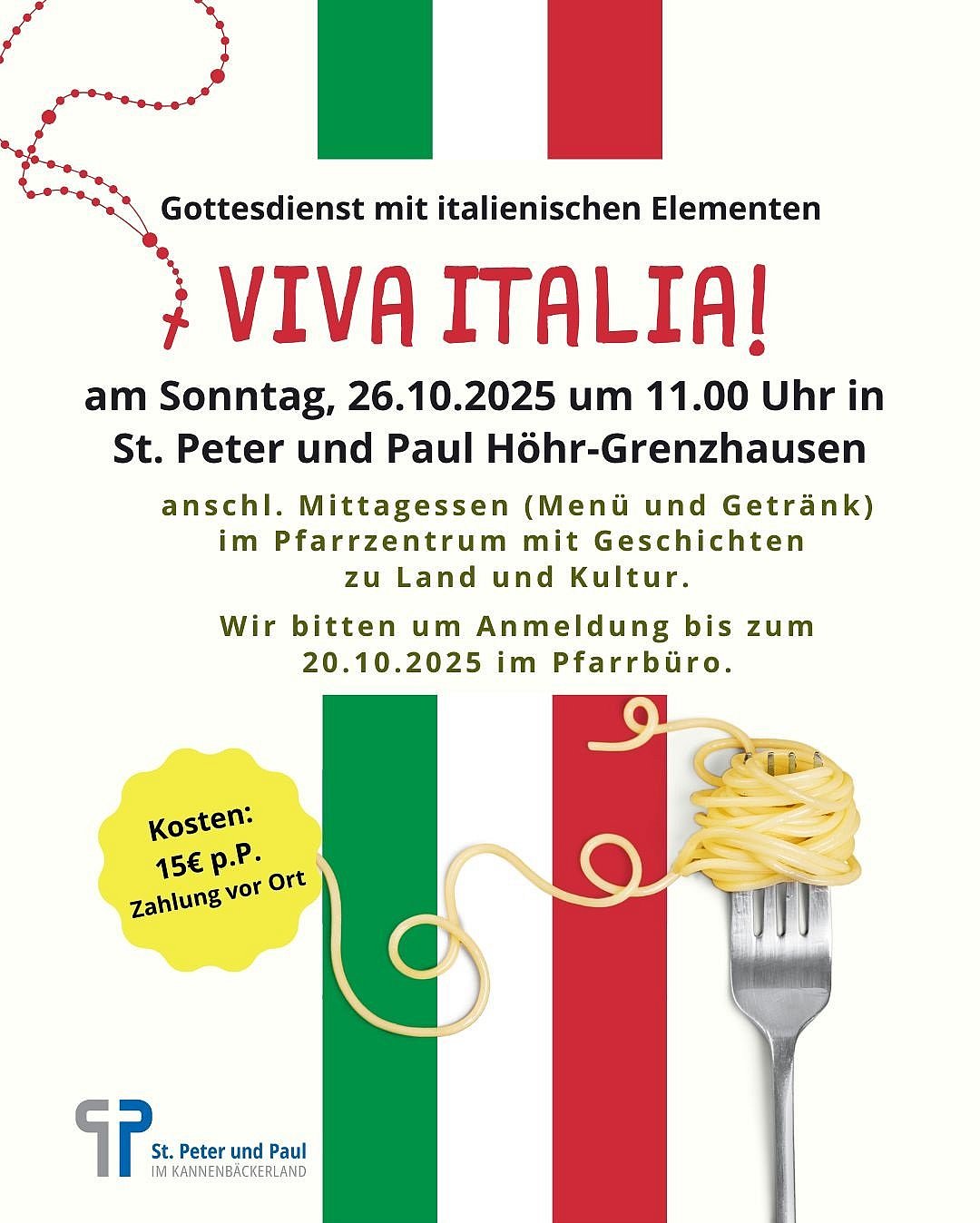 Gottesdienst mit italienischen Elementen und anschließendem Mittagessen am Sonntag 26.10.2025 in Höhr-Grenzhausen