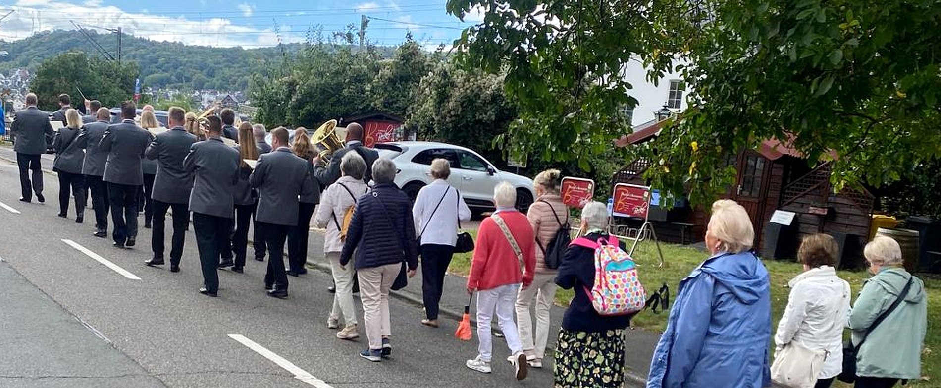 Es war wieder ein erhebender Moment, als die diesjährige Wallfahrtsgruppe von Pilgern aus unserer Pfarrei in Bornhofen einzog und sich begleitet von dem Musikverein Nauort auf die Wallfahrtskirche zubewegte.