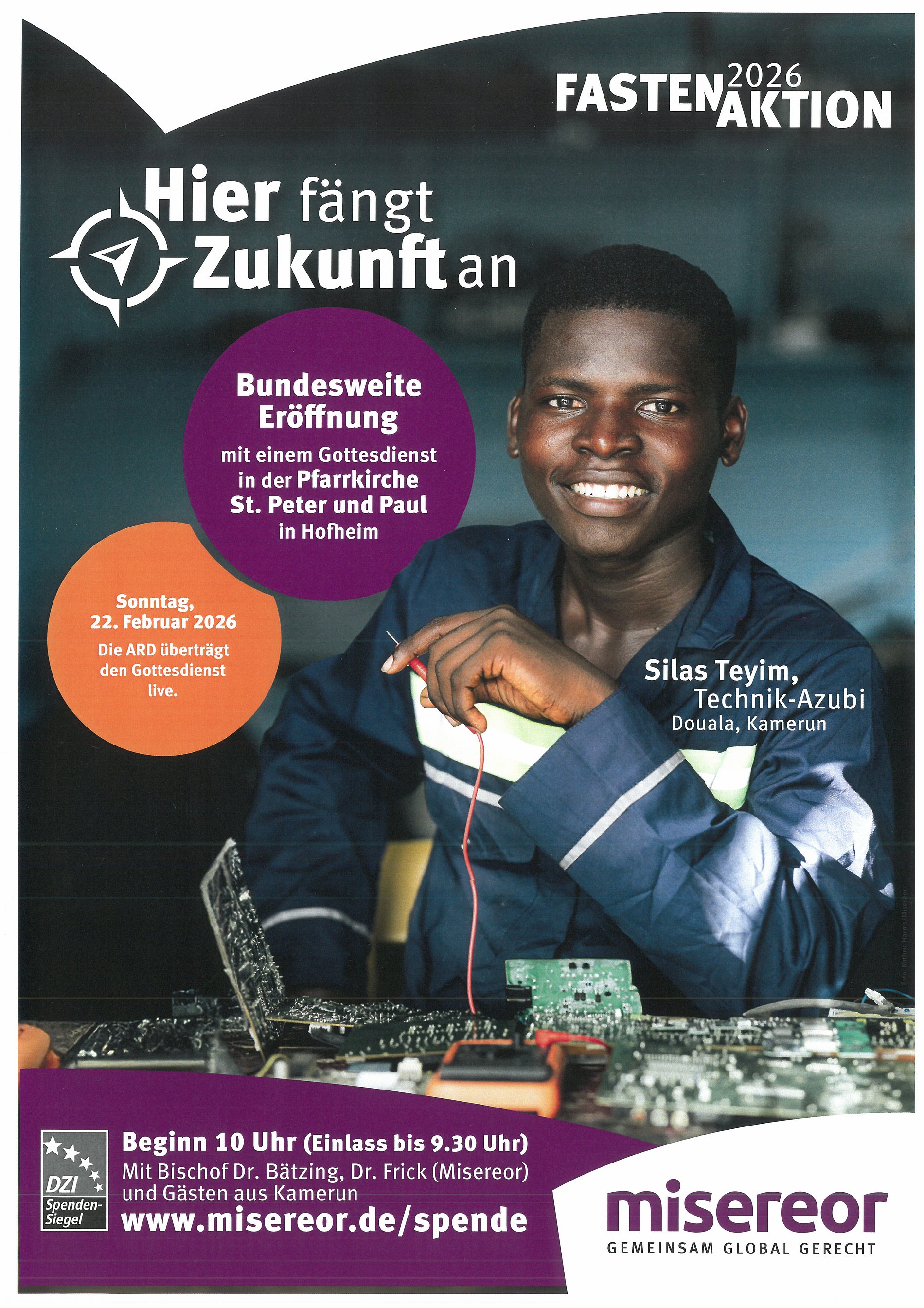 Die Fastenaktion 2026 wird am Sonntag, 22. Februar, im Bistum Limburg mit einem festlichen Gottesdienst eröffnet. Der Gottesdienst beginnt um 10:00 Uhr in der Pfarrkirche St. Peter und Paul in Hofheim und wird live im ARD-Fernsehen übertragen.